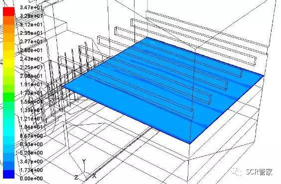 5)模型尽量建立完全,反应器出口之后的优化虽对脱硝效率没影响,但对下游的空预器有影响,空预器进口烟气流速偏差过大将对空预器换热效果造成影响。一个反面的案例如下: